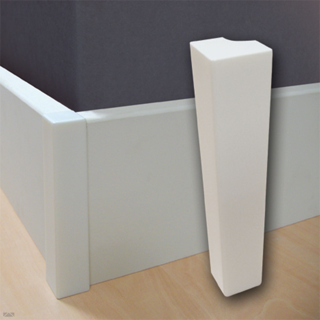 De hoekstukjes kunt u afkorten bij lagere plinten.