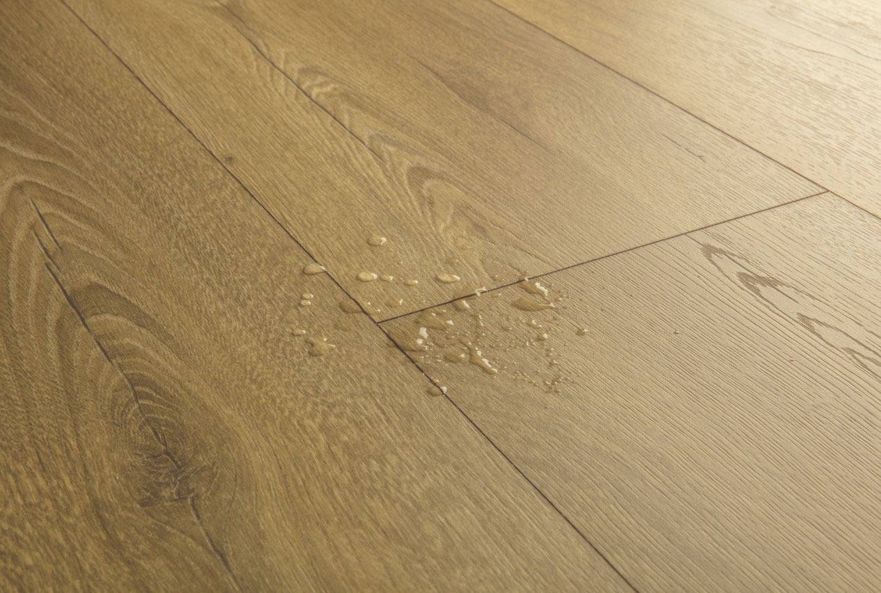 Maak kennis met de nieuwste generatie laminaatvloeren. Vloeren die er niet alleen buitengewoon stijlvol en natuurlijk uitzien, maar ook tegen een stootje kunnen én bovendien 100% bestand zijn tegen vocht. Dankzij hun innovatieve, waterafstotende 'HydroSeal' coating, zijn de nieuwste laminaatvloeren van Quick-Step de eerste echt waterbestendig laminaatvloeren ter wereld. Van nu af aan gaan design en duurzaamheid van je vloer perfect hand in hand.